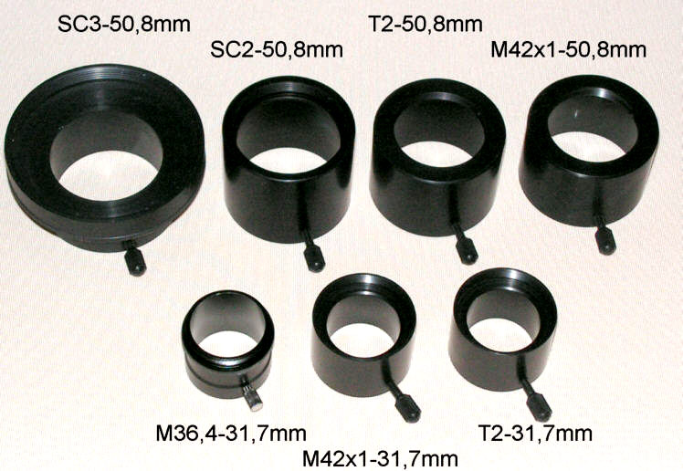 Anschluss (objektseitig): 50,8mm(pos) Anschluss (beobachterseitig): 31,7mm(neg) Lichtweg: 2mm