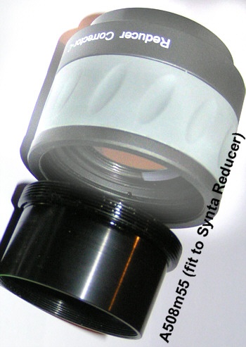 Der Adapter A508m56 ermöglicht es die 0,85x-er SkyWatcher Flattener an andere Teleskope (z.B. Equinox) zu adaptieren. Mit diesem Adapter können Sie die beliebten Skywatcher Flattener mit allen 2" Okularauszügen verwenden, z.B. an Skywatcher Equinox Refraktoren. Das M56x1 Gewinde des Flatteners wird auf eine 2" Steckhülse übersetzt, 2" Filter können zusätzlich eingeschraubt werden. Der Adapter hat praktischerweise die richtige Länge, damit er auch mit eingeschraubtem 2" Filter nicht am internen Stoppring vieler 2" Auszüge anstösst, und daher völlig im OAZ verschwindet.
