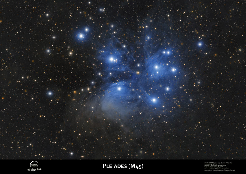 Astro-Poster, Pleiades (M45), höchste Druckqualität. Foto von Tommy Nawratil, Austria (A1, 60x84cm)