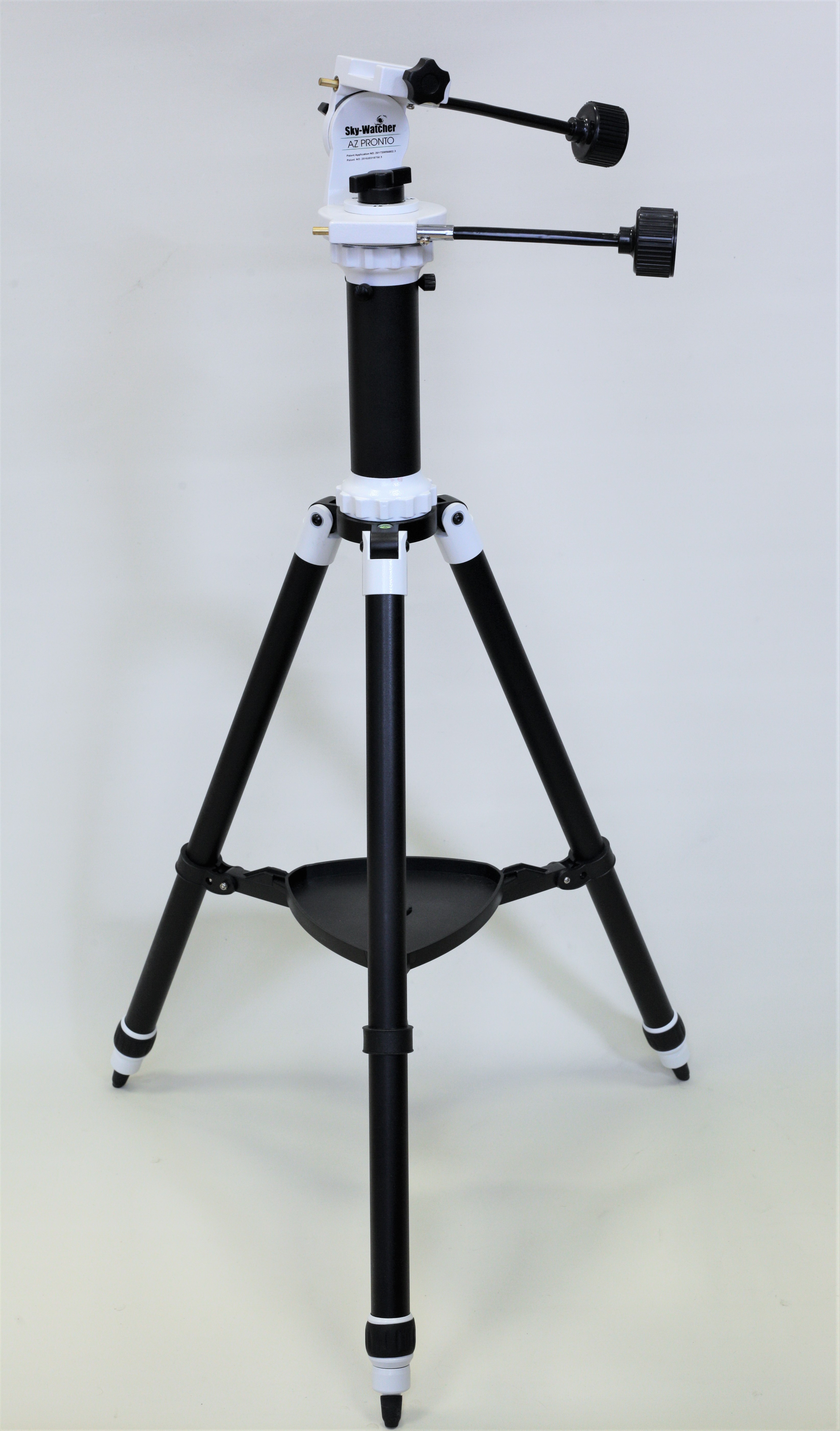 Die neue SkyWatcher Pronto Azimut Montierung ist sehr einfach und bequem zu bedienen. Die schnelle Installation, das geringe Gewicht und die kompakte Größe machen sie zu einer idealen Reisemontierung. Die AZ3-R ermöglicht dabei eine richtig stabile und qualitativ hochwertige Basis für kleinere Fernrohre und Teleskope. Das Instrument  kann durch eine standard Prismenschiene fixiert werden, aber auch Ferngläser, Kameras und andere optische Instrumente sind montierbar. Das Montieren von Optiken erfolgt schnell und erfordert keine Werkzeuge. Die Feinbewegung auf beiden Achsen erfolgt über flexible Arme und sorgt für eine präzise Positionierung.
