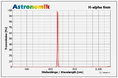 Die Halbwertsbreite von 6nm ist optimal auf die Verwendung von CCD und CMOS Sensoren mit besonders geringem Dunkelstrom abgestimmt. Die 6nm Filter sind die erste Wahl, wenn Sie von einem Standort mit extremer Lichtverschmutzung beobachten oder generell immer wenn schwache Objekte in sehr sternreichen Gebieten des Himmels aufgenommen werden sollen.