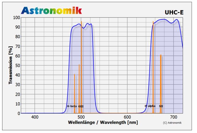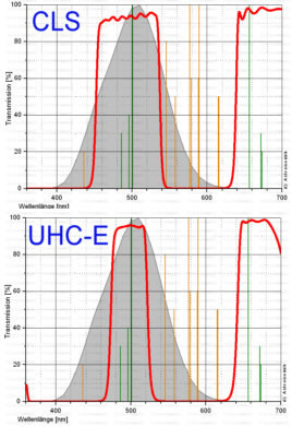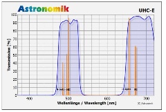 Für Teleskope ab 5" (127mm) Öffnung empfehlen wir den UHC Filter mit einer noch stärker kontraststeigernderen Wirkung.