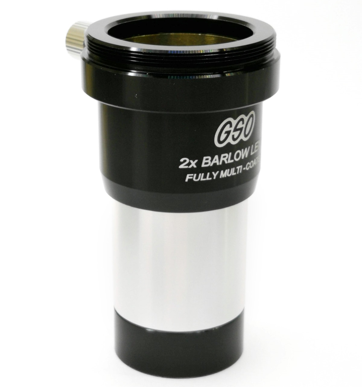 Die Barlowlinse hat 31,7mm Steckhülse, das Barlow-Element selbst hat Standard M28,5x0,6 Filtergewinde, welches sich in vielen Kameras direkt einschrauben lässt. Wenn kein Filtergewinde vorhanden ist (z.B. DSLR Kamera), können sie die B2T Barlow auch mit dem okularseitigen T2-Gewinde an die Kamera befestigen. Mit dem Abstand zwischen Sensor und Barlow Element lässt sich der Verlängerungsfaktor variieren. Je kleiner der Abstand ist, desto niedriger der Verlängerungsfaktor, je größer der Abstand, desto stärker wirkt die Barlowlinse. Diese Barlowlinse ist sehr "gutmütig" und kann in einem Bereich von 1,5x bis 4x verwendet werden.