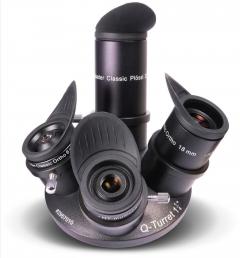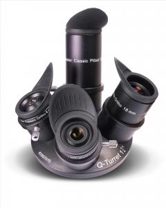 Der Okularrevolver ermöglicht das rasche Wechseln zwischen den verschiedenen Okularen oder einen optionalen Kamera für die Planetenfotografie. Er passt an die meisten Refraktoren und Schmidt-Cassegrain-Teleskope sowie an viele Newton-Spiegelteleskope. Durch das leichte, aber robuste Kunststoffgehäuse werden auch einfache Okularauszüge nicht überlastet. Die Schraubgewinde sind aus Metall.