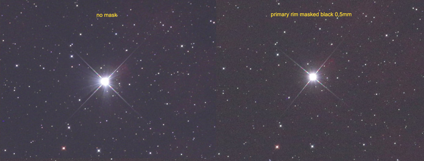 Diese Blende kann statt (oder zusätzlich) der originalen Takahashi Halteklammern (eigentlich: Sicherungslaschen) beim Epsilon-130D eingebaut werden. Die perfekt kreisförmige Apertur bewirkt, dass es keine Beugungserscheinungen von den Halteklammern mehr gibt.
