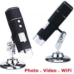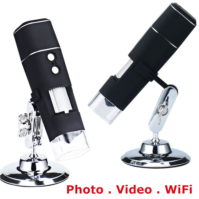 Das ins Digitalmikroskop eingebaute leistungsstarke WiFi-Modul bietet eine stabile Verbindung sowohl mit iPhone, als auch mit Android Mobiltelefonen. Fotos in JPG- und Videos im MP4-Format können am Mobiltelefon gespeichert werden. Die Auflösung des digitalen Mikroskops ist 1920x1080 Pixel, es entspricht somit HD-Qualität. Ein einfach zu bedienendes stabiles Tischstativ aus Metall hilft das Mikroskop immer in die richtige Position einzustellen. Acht dimmbare LEDs sorgen für eine schattenfreie Ausleuchtung des Objektes.