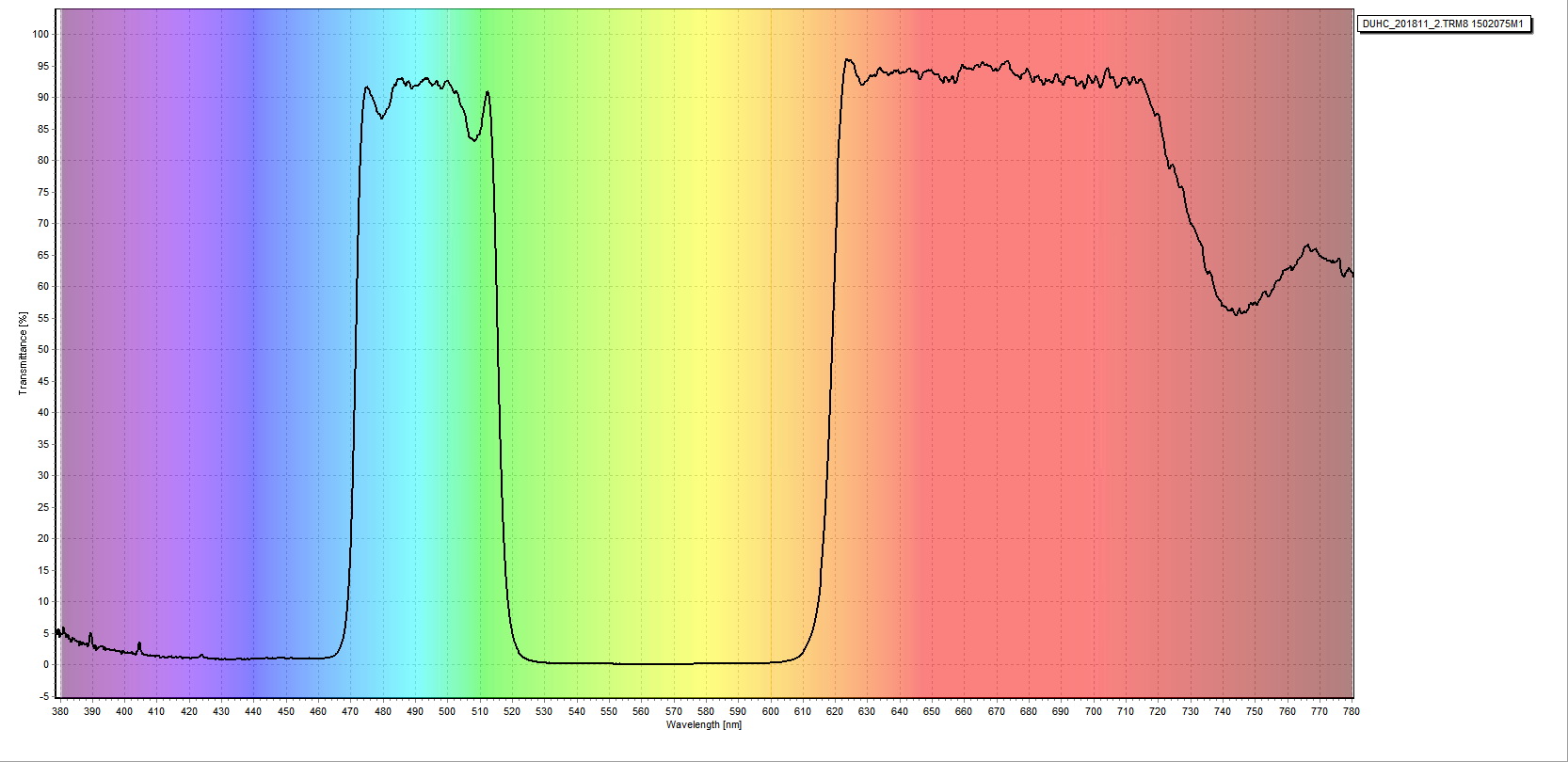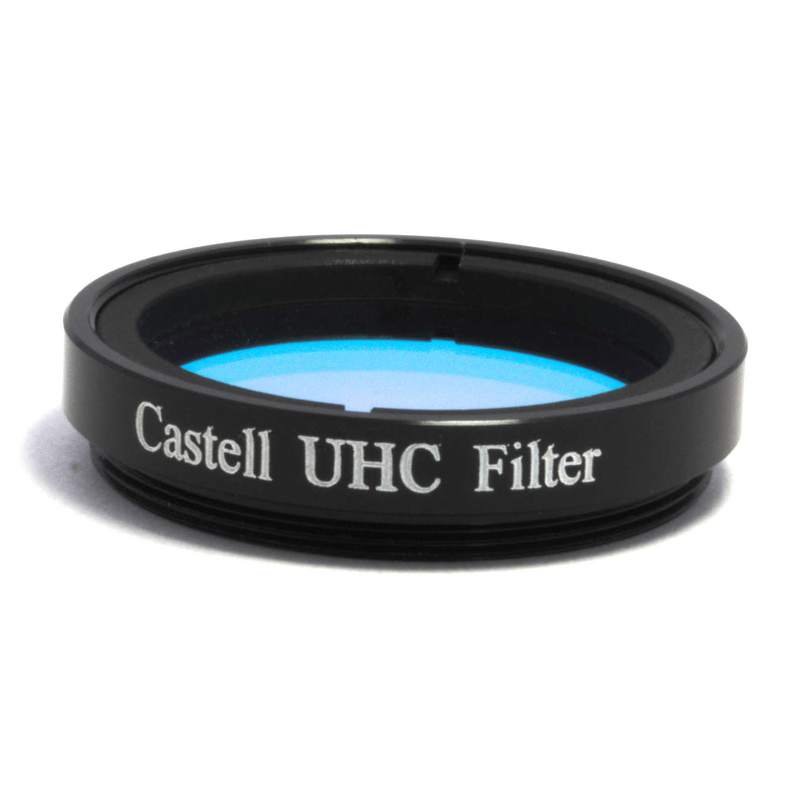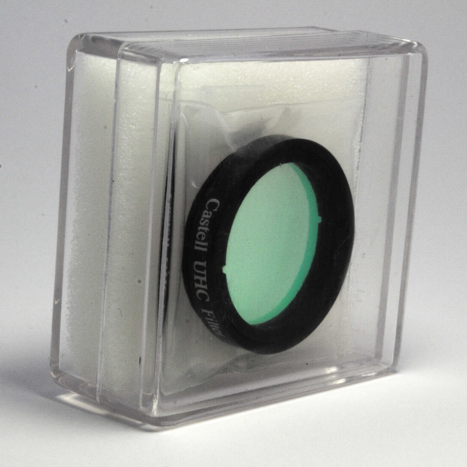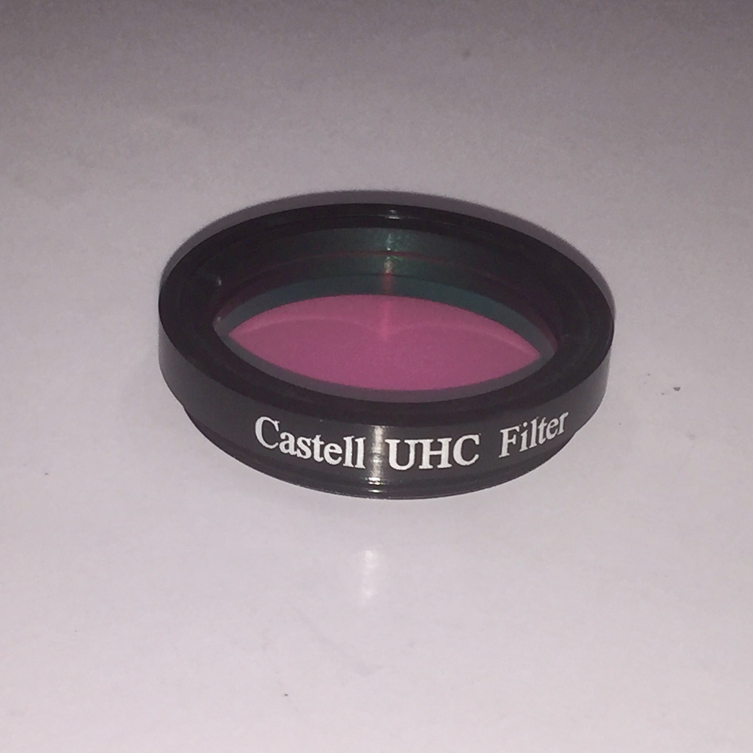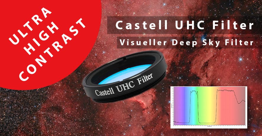 steigert entscheidend den Kontrast bei Lichtverschmutzung. Die UHC (Ultra High Contrast) Filter sperren einen Grossteil des künstlich erzeugten Streulichts aus, aber lassen genau den Bereich der H-Beta, H-Alpha, S-II und O-III Spektrallinien durch. Der Effekt an selbstleuchtenden Nebeln ist drastisch: Die Lichtverschmutzung im Teleskop wird auf einen Bruchteil reduziert, aber das Licht der Emissionsnebel geht praktisch ungehindert durch. Der Himmelhintergrund wird abgedunkelt, und das Objekt springt förmlich hervor. Durch den Durchlass im Roten auch als starker fotografischer Nebelfilter geeignet.