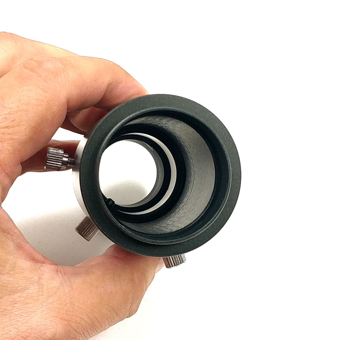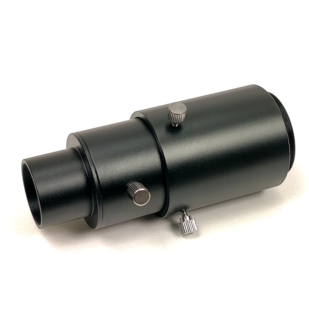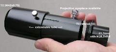 Dieses 3-teilige Adapterset (Extendable Camera Adapter) mit veränderbarem Lichtweg wird als Verbindung zwischen dem 31,7mm-Okularauszug und dem T2-Gewinde, an dem Sie Ihre SLR-Kamera mit Bajonett befestigen, eine WebCam durch C-Mount oder einen WebCam-Adapter aufschrauben können, verwendet. Im Inneren des Adaptersets können Sie ein Projektionsokular befestigen. Wenn Sie den Lichtweg zwischen dem Projektionsokular und der Kamera verändern, ändert sich auch der Projektionsfaktor: So können Sie die optimale, effektive Brennweite einstellen, was vor allem bei der Planetenfotografie sehr wichtig ist.