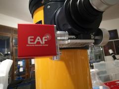 Takahashi ist es gelungen, für den Epsilon-130D einen Extender zu entwickeln, der die ausgezeichnete Sternabbildung auf der Achse wie im Feld beibehält. Die Brennweite wird um den Faktor 1.5x auf 650mm verlängert (f/5), daher ist der Epsilon auch für die Fotografie kleinerer Objekte geeignet, was das Einsatzspektrum deutlich erweitert. Es ist optisch ein hoher Bauaufwand erforderlich, der Extender ist mit 7 Linsen in 5 Gruppen aufgebaut. Er korrigiert mindestens so gut wie der originale 2-linsige Korrektor und erreicht Spot-Größen von nur 2 Mikrometer auf der Achse und maximal 8 Mikrometer in den Ecken vom Vollformat. Auch die Ausleuchtung ist mit 60% bei Vollformat erfreulich gut. Die Montage am Tubus ist denkbar einfach, der originale Korrektor wird einfach durch den Extender ersetzt. Mit diesem Extender ist der Epsilon auch besser für die Beobachtung einzusetzen, es wird daraus ein entspannter 1:5 Newton, was wesentlich weniger Anforderungen an die Okulare stellt.