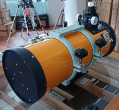 Der neue Epsilon-160ED wurde optisch deutlich weiterentwickelt, da heute mit hochauflösenden Digitalkameras ganz andere Anforderungen gestellt werden, wie damals mit chemischem Film. So erreicht das neue Modell mit ED-Glas bei einer der beiden Korrektor-Linsen einen Spotdurchmesser von einem 1/10 des alten Modells, am Rand des für Vollformat ausgelegten Bildfeldes entspricht das lediglich 3 Mikrometer Spotdurchmesser! Der Fangspiegel (63mm kleine Achse, nicht größer als beim Epsilon-130ED!) ist auf einer äußerst stabilen Spinne befestigt, alles ist innen makellos ausgeschwärzt. Der Korrektor im Auszugsrohr korrigiert die sphärische Aberration und das Koma, die Epsilon Geräte sind für ihre ausgezeichnete Feldkorrektur bei Astrofotografen sehr geschätzt. In Verbindung mit Vollformatkameras