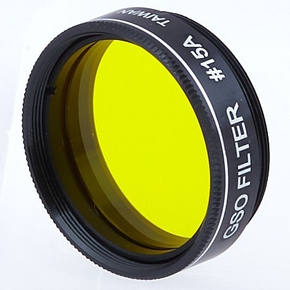 Gelb: ab 80mm, hebt den Kontrast am Mond, bringt Oberflächendetails und Wolken am Mars heraus, stärkt auch Atmosphärenstrukturen am Jupiter (großer roter Fleck..) Gut für Doppelsternbeobachtungen mit Refraktoren.