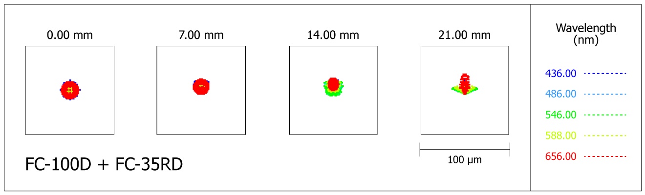 Der FC-100DF ist ein preiswerter 4" Apo höchster Qualität, der Dank des 2 Zoll Auszuges auch sehr gut für DeepSky-Fotografie geeignet ist und auch schwerer Kameras verträgt. Das Preis-Leistungs-Verhältnis ist sehr gut, teure mechanische Extras gibt es hier nicht, so ist die Taukappe wie auch bim FC-100DC nicht einschiebbar. Eine der beiden Linsen besteht aus Fluorit (CaF2), bei den FC-Geräten ist es die innenliegende, im Vergleich zum alten Modell konnte die Farbreinheit nochmals etwas verbessert werden, obwohl die Neuauflage eine kürzere Brennweite hat. Das Fluorit-Objektiv liefert eine herausragende Bildqualität und ist Dank der zweilinsigen Bauart sehr leicht und kühlt schnell aus.