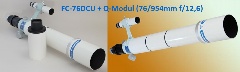 Diese Geräte liefern eine herausragende Bildqualität und sind dank der zweilinsigen Bauart sehr leicht und kühlen schnell aus. Den FC76 gibt es in zwei Ausführungen, hier mit kleinen Tubus und Okularauszug des FS-60CB (FC-76DCU), oder auch mit großen Tubus und 2" Auszug (FC-76DS), letzteren empfehlen wir für fotografische Anwendungen. Der FC-76DC wurde vom Nachfolgemodell FC-76DCU abgelöst, die DCU-Version hat einen teilbaren Tubus, er kann in der Mitte auseinander geschraubt werden. Man hat so ein perfektes Reiseteleskop, das sich problemlos verstauen lässt, die beiden Hälften sind je rund 33cm lang. Natürlich gibt es für beide Geräte ein reichhaltiges Zubehörangebot mit Reducer, Flattener und Extender. Beide Varianten des FC-76D können mit der 1:8 Mikrountersetzung MEF-3 nachgerüstet werden.