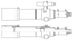 Der Tubusdurchmesser ist 95mm, die Taukappe ist einschiebbar, man erreicht so eine kurze Transportlänge von nur rund 54cm! Schraubt man die okularseitigen Adapter ab, wird er noch deutlich kürzer, beim empf. Zubehör finden Sie auch einen M72-Schraubdeckel für ein kürzest mögliches Transportmaß von 37cm, Stichwort Handgepäck...