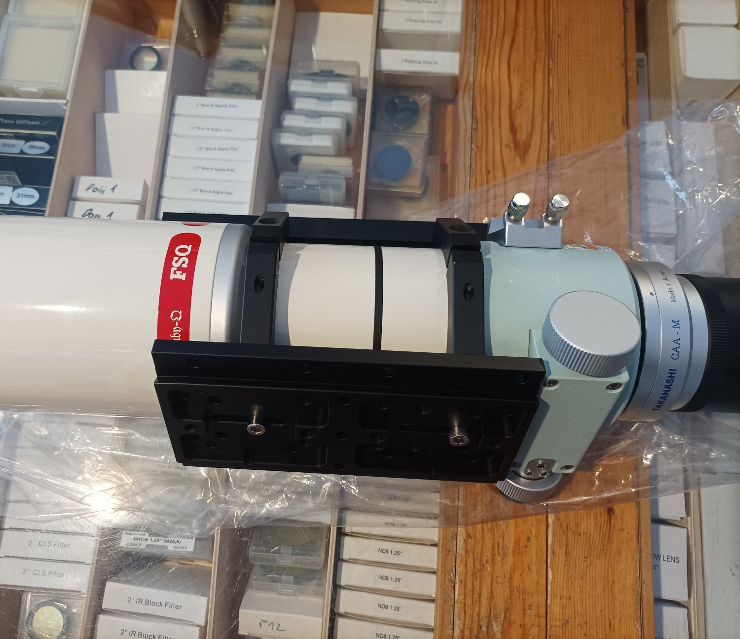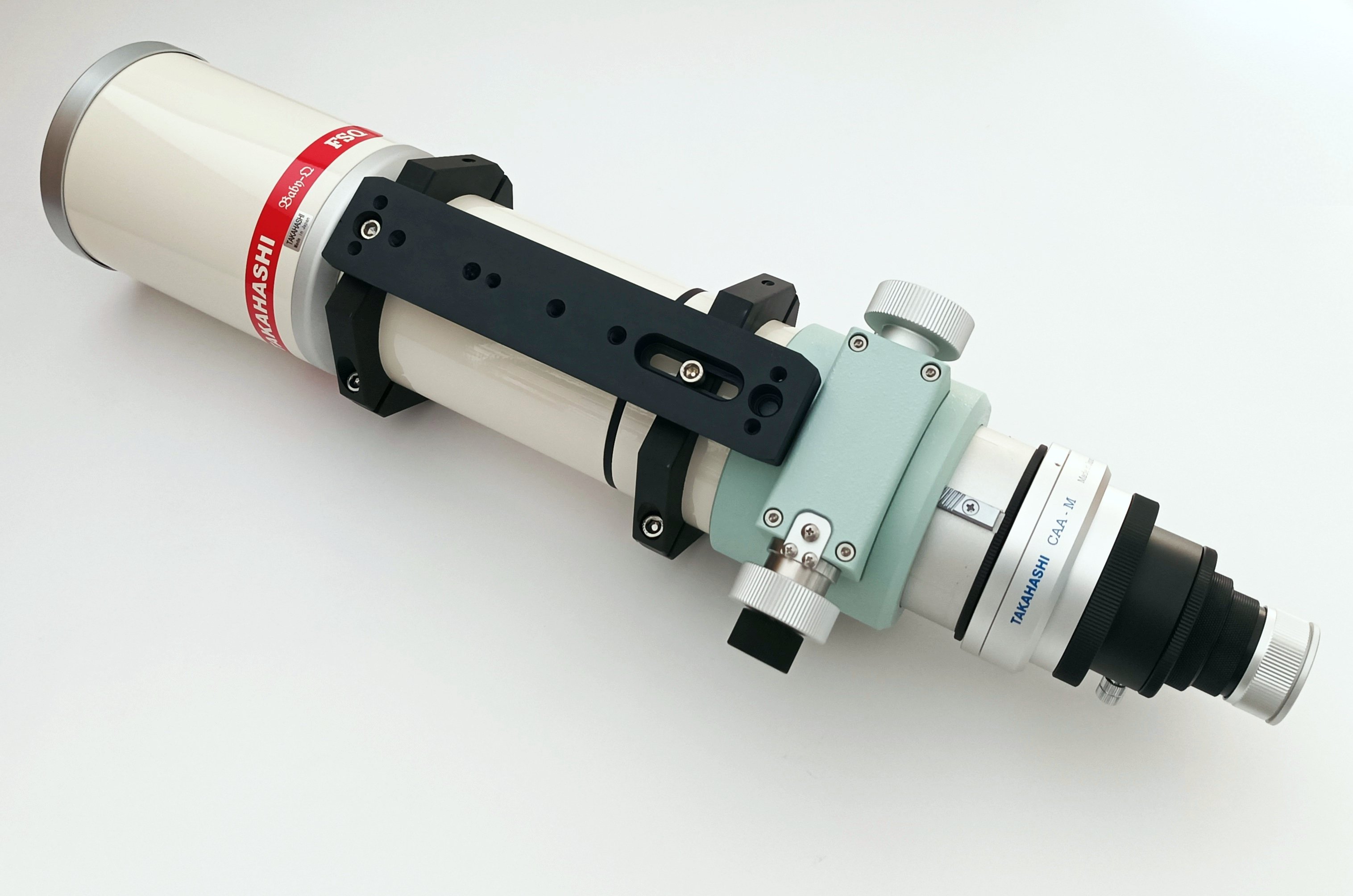Angeregt vom Erfolg des legendären FSQ-106ED hat Takahashi auch einen kleinen Bruder auf den Markt gebracht, den FSQ-85ED. Er ist kompakter und deutlich leichter, der Tubus wiegt nur 3,6kg! Er lässt sich somit auch auf transportablen Montierungen stabil befestigen bzw. eignet sich gut als vielseitiges Reisegerät. Hier bieten wir den Tubus mit den hochwertigen Lacerta CNC-Rohrschellen und passender Vixen-Schiene an. Die Schellen werden über M6-Schrauben sicher geklemmt, der Aufbau ist massiv und verwindungssteif. Auch eine Universal-Sucherklemme ist dabei, sie passt zum Takahashi-Lochabstand und kann die Standard Sucher bzw. Guidescopes von Lacerta oder SkyWatcher aufnehmen. Weiteres passendes Zubehör finden Sie weiter unten aufgelistet!