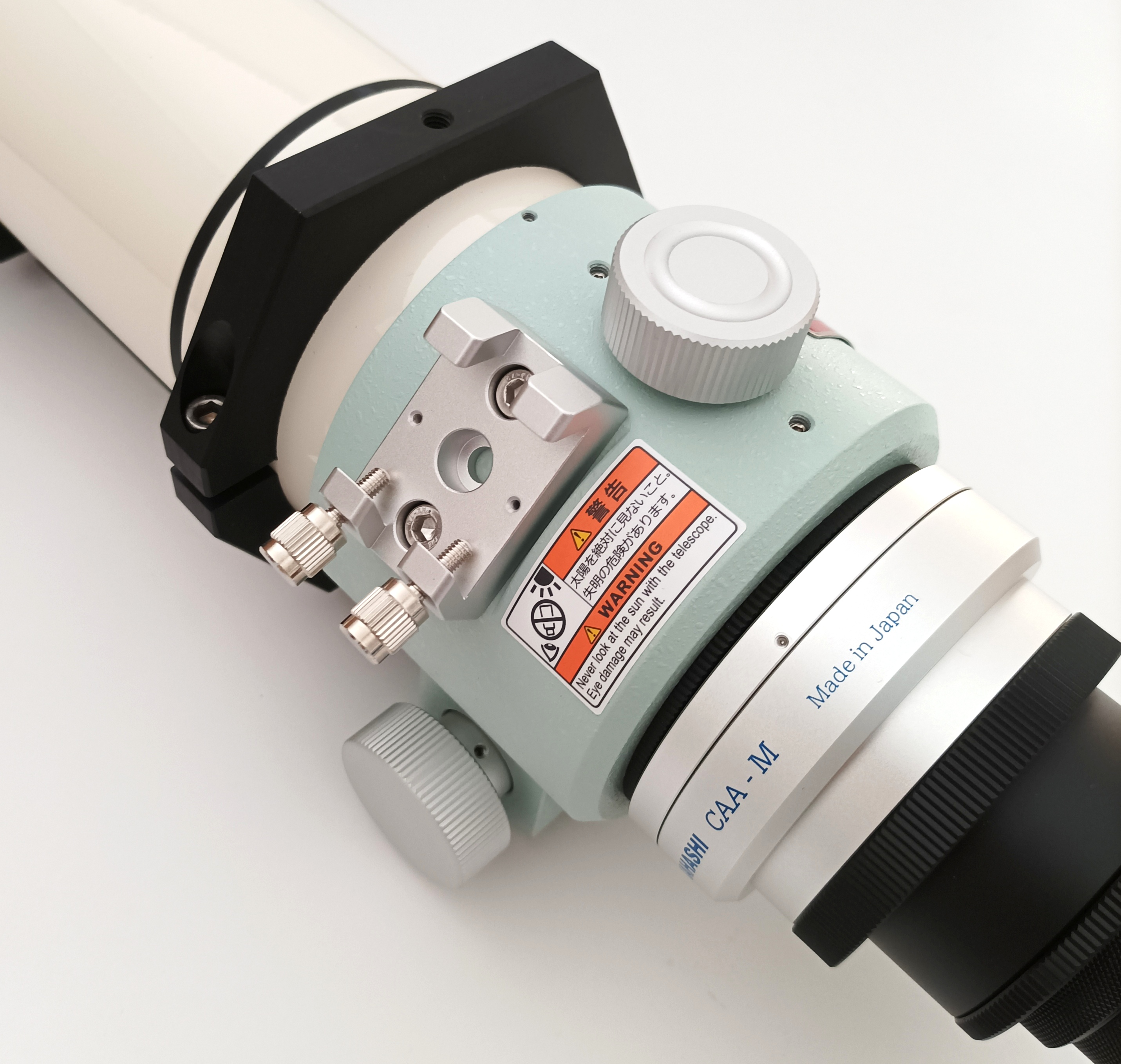 Der FSQ-85 ist mit einem großzügig dimensionierten Zahnstangen-Auszug ausgestattet, da bei einem so schnellen Öffnungsverhältnis eine genaue Fokussierung besonders wichtig ist, ist er bereits werkseitig mit einer Mikrountersetzung ausgerüstet. Der Auszug ist nicht rotierbar und fest mit dem Tubus verschraubt, was Kollimationsprobleme im Ansatz vermeidet. Die Rotation der Kamera erfolgt nur über den externen Rotator, sie ist dabei spielfrei und dennoch leichtgängig. Unsere EDX-Version hat ab Werk einen 2-Zoll Anschluss, dieser kleine Apo ist ja auch ein tolles Gerät zur visuellen Beobachtung!