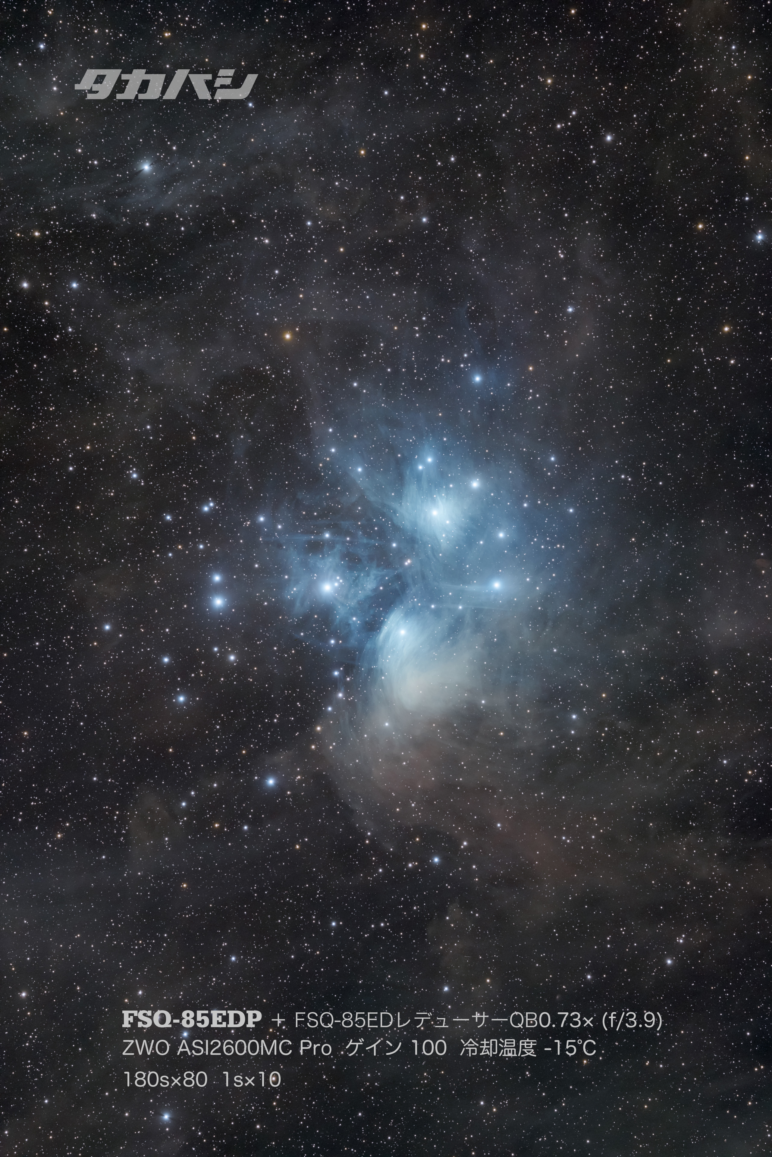 Der neue ED-Reducer-QB für Vollformat mit dem Faktor 0.73x macht aus dem FSQ-85 ein extremes Rich-Field-Gerät mit gigantischen 7,5° Bildfeld, bei perfekter Korrektur in den Ecken. Auch große Nebelgebiete können mit ihren schwachen Ausläufern auf einmal abgebildet werden. Er reduziert die Brennweite auf 330mm bei einem schnellen Öffnungsverhältnis von rund f/3.9. In der Bildmitte beträgt die rechnerische Spotgröße 1,6 Mikrometer, bei APS-C Format maximal 2µm und am Rand vom Vollformat lediglich 4µm