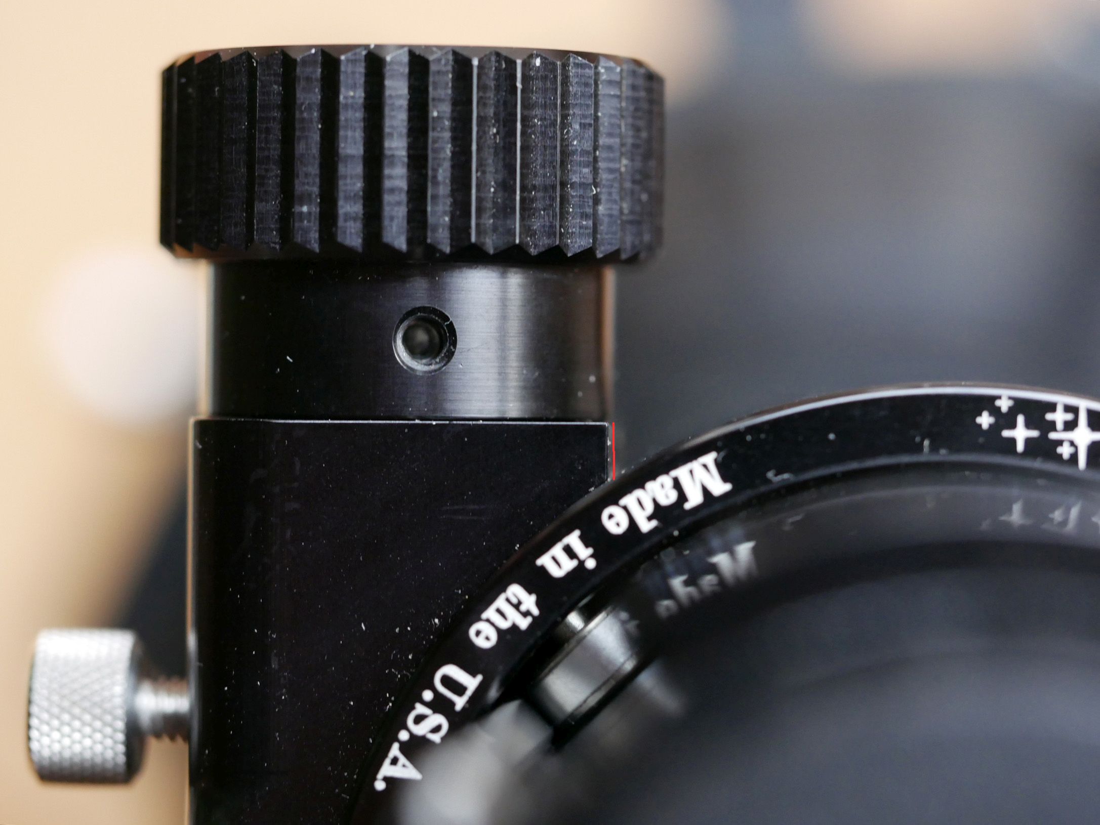 ein Serviceloch für die Madenschrauben an der Fokuswelle selbs