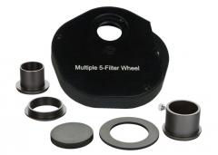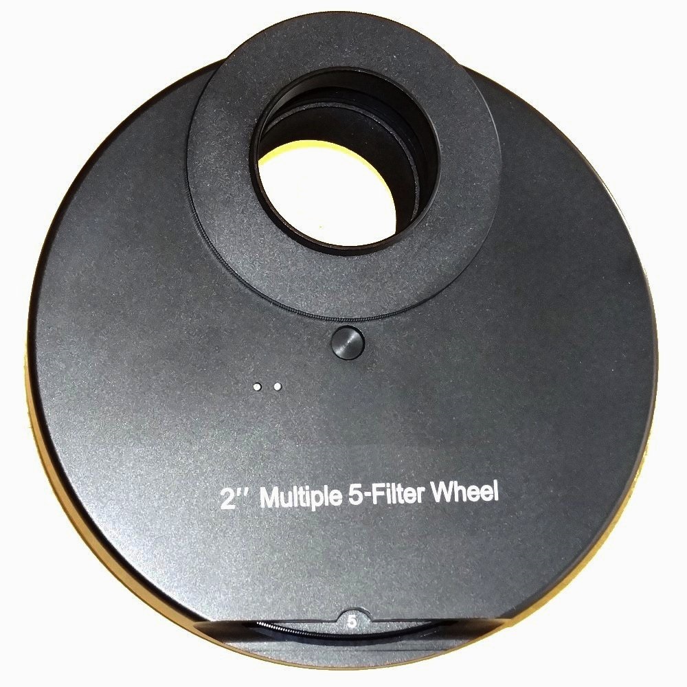 Dieses äußerst hochwertig und komplett aus Metall verarbeitete Filterrad besitzt Schraubplätze für 5 Standard 2" Filter (M48), das Filterrad lässt sich leicht bewegen und rastet satt und ohne Spiel in seinen Positionen ein. Es kann mit 4 Schrauben an der Unterseite geöffnet werden und hat fernrohrseitig ein M54-Innengewinde, ein Adapter auf M48-Innengewinde sowie eine 2" Steckhülse für die Montage am Fernrohr sind enthalten.