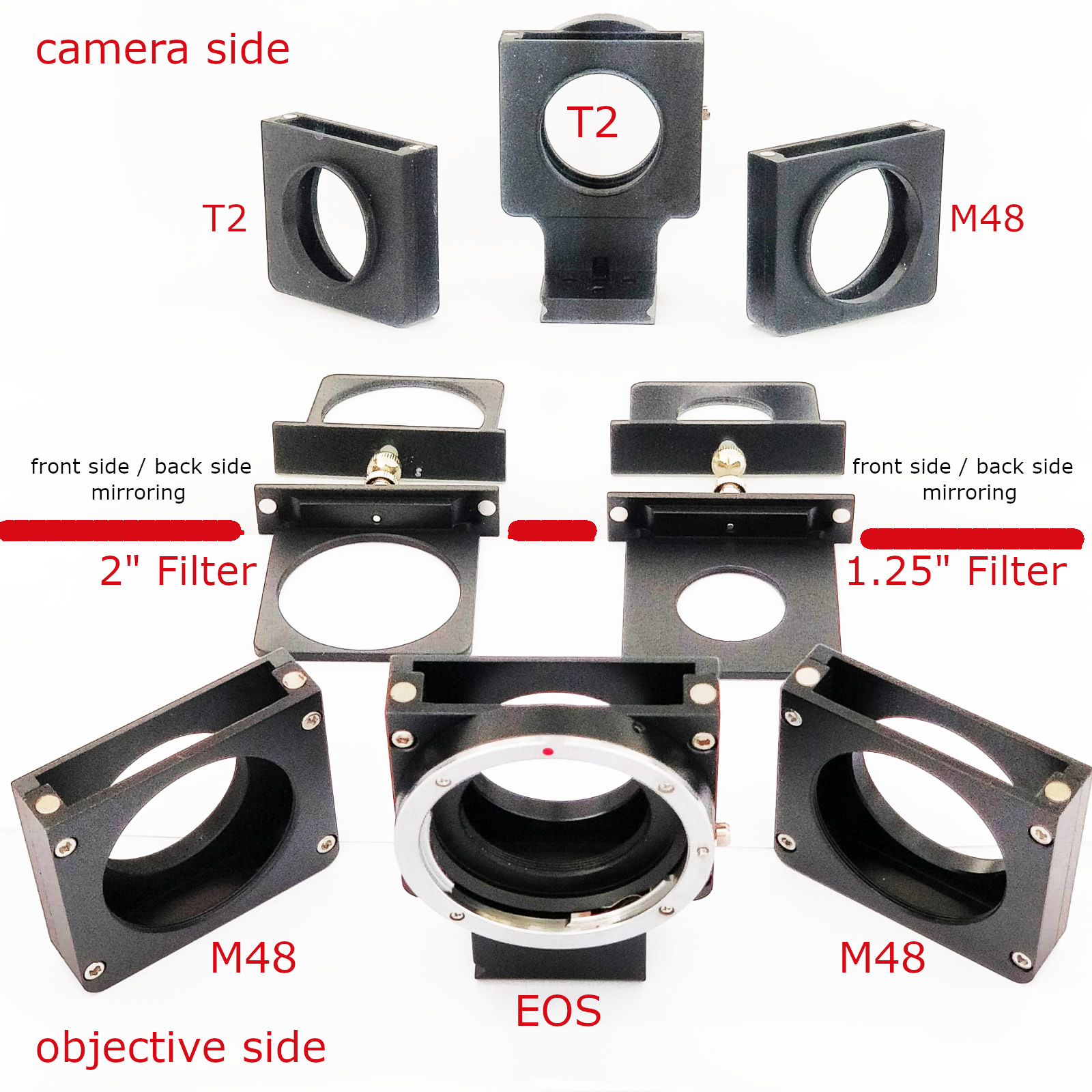 Bildfeldkorrektoren mit M48x0.75 Anschlussgewinde zu adaptieren. Es besteht auch die einfache Möglichkeit Optiken mit T2-Anschluss zu verwenden. Lediglich das Adapterset FilSchubAdapT2 wird dazu benötigt. Das Zusammenbau Schritt für Schritt sehen Sie im Fotoalbum.