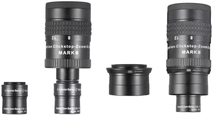 Somit deckt die Hyperion Barlow zusammen mit dem ClickStop Zoom Okular den weiten Brennweitenbereich von 3,6 bis 24 mm ab!