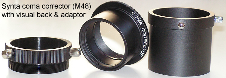 Vorne ist im Korrektor ein M48-Filtergewinde, somit kann man auch bei der Fotografie mit Spiegelreflexkameras Filter einsetzen. Zum Anschluss einer Kamera benötigt man noch einen M48-Bajonettring, wir bieten welche für Canon, Nikon und Sony an. Zum Lieferumfang gehört auch eine 2"-Hülse, damit lässt sich der Korrektor auch visuell mit Okularen verwenden.