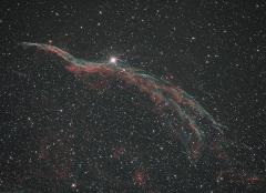 ermöglicht gleichzeitige Aufnahme von H-Alpha, H-Beta und OIII Schmalbandbildern. Die hier gezeigte Cirrus-Nebel Aufnahme wurde von Lajos Szánthó aus den österreichischen Alpen mit nur 14x1 Minuten Expositionszeit und minimaler Nachbearbeitung (Stack, Contrast, Whitebalance) mit einer 200/800 Lacerta Fotonewton, L-DualBand30 Filter und einer Canon EOS 77D Digitalkamera aufgenommen.