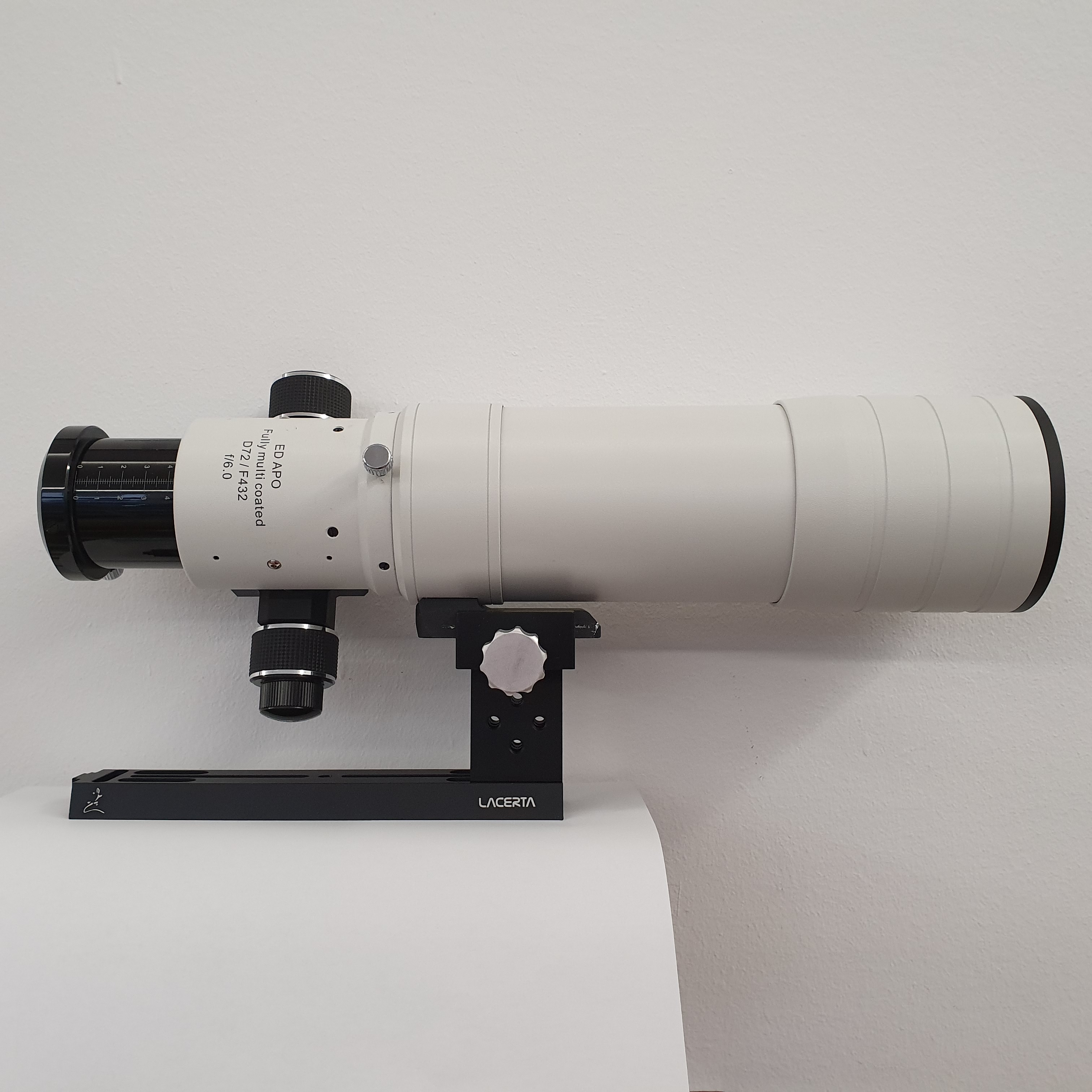 Der Lacerta 72mm Apochromat erfüllt hohe Ansprüche auch für Naturbeobachter: Farbreinheit und Farbechtheit sind eine Selbstverständlichkeit, sowohl visuell als auch fotografisch. Das hochwertige optische System, gepaart mit dem neuen Octo Okularauszug (auf 8 Kugellagern geführt), verspricht viel Erfolg bei der anspruchsvollen Fotografie. Selbst schwere Kameras werden mit guter Stabilität gehalten, die Scharfstellung erfolgt sehr feinfühlig mit dem 1:10 Mikrofokuser. Montage über eine solide Vixen Schwalbenschwanz Befestigungsschiene mit integriertem 1/4" Fotogewinde. Damit kann man das Gerät auch auf jedem guten Fotostativ befestigen. Die Schiene lässt sich zum besseren Austarieren umdrehen.