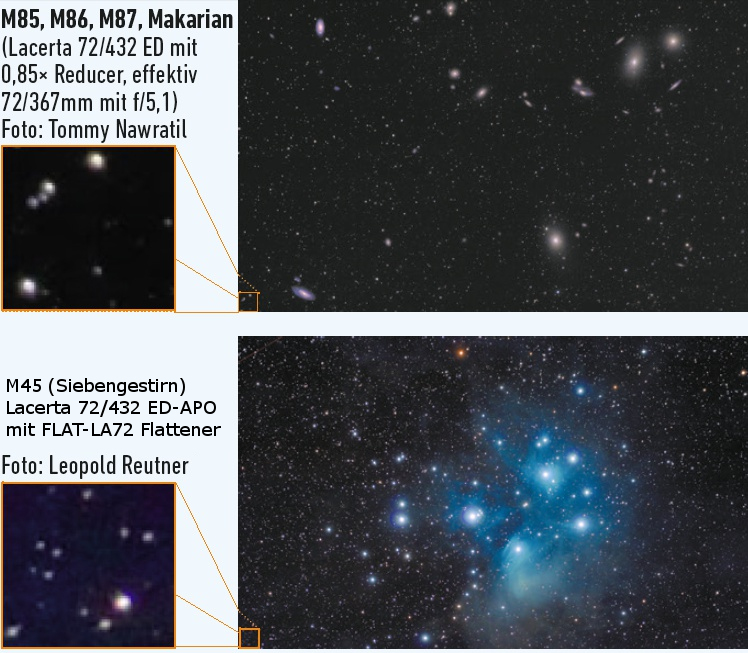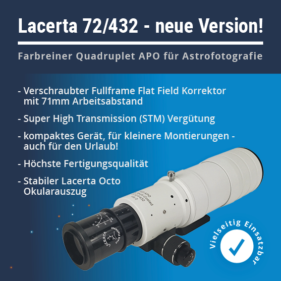 La72341FLAT432 | PAKET: 72/341 (f/4.7) & 72/432 (f/6) Flatfield-APO (ein Teleskop mit 2 Flattener) im Alukoffer | 949.90 EUR | |