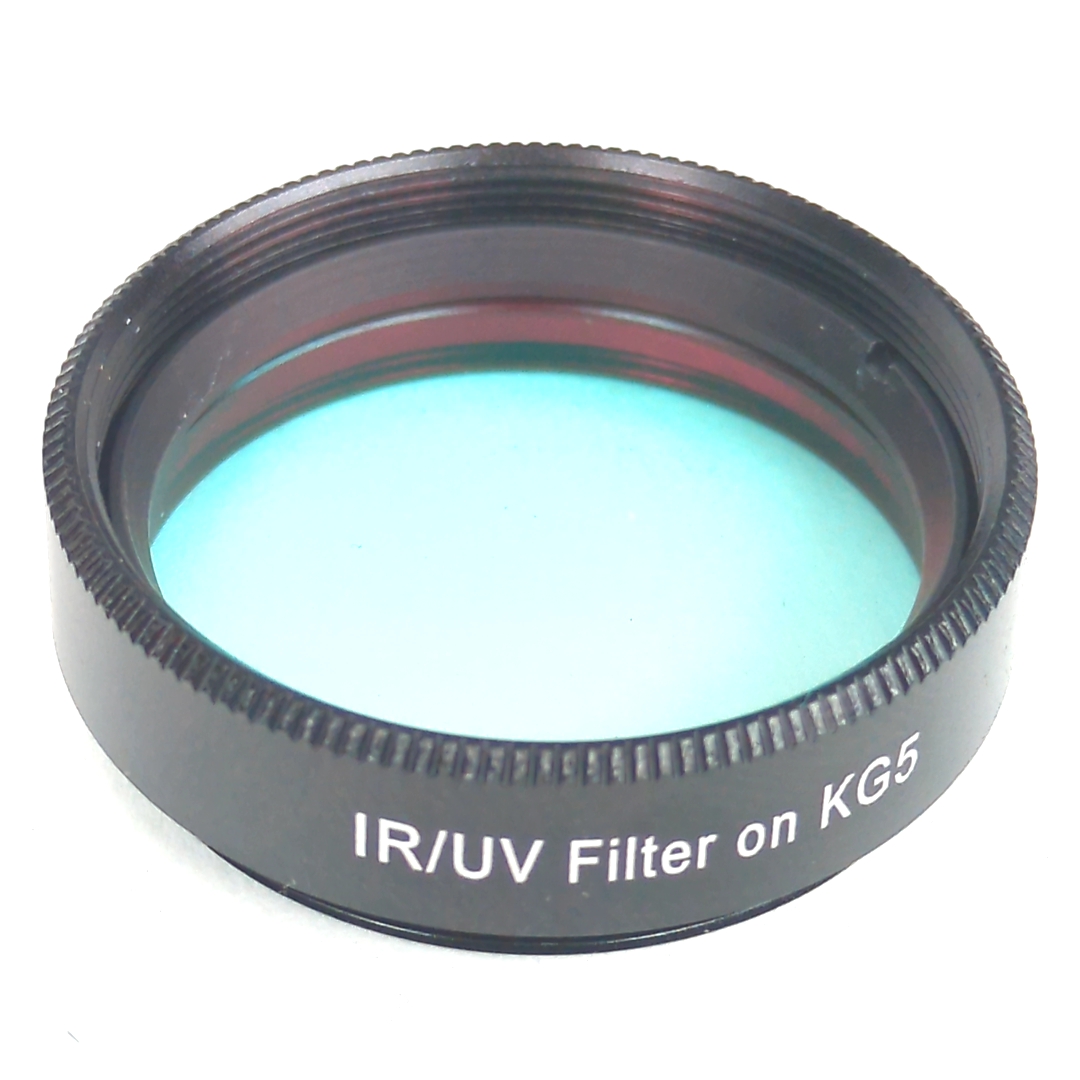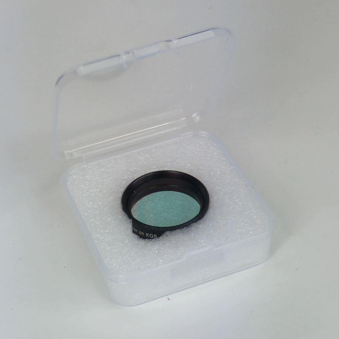 KG5 bedeutet, dass selbst das Glasmaterial die IR-Strahlung mindestens auf hundertstel, ganz bis 5000nm blockt! Mit einer zusätzlichen IR/UV Beschichtung bietet es der bestmögliche Schutz gegen die Wärmestrahlung der Sonne und auch gegen der Streulicht in IR und UV Bereich. Und zwar sowohl visuell, als auch fotografisch! Der Filter ist sogar bei Mikroskopen mit Halogenbeleuchtung gegen Erwärmung des Präparates einsetzbar.