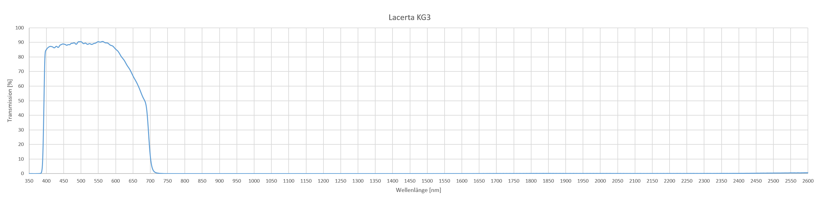 Der LACERTA KG3 Filter blockt die IR-Strahlung ganz bis 3000nm deutlich unter 0.5%! Damit ist ein bestmöglicher Schutz gegen die Wärmestrahlung der Sonne gegeben.