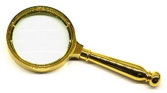 Vollmetall-Lupe mit 5x Vergrößerung, massives Gehäuse im Gold-Design.
