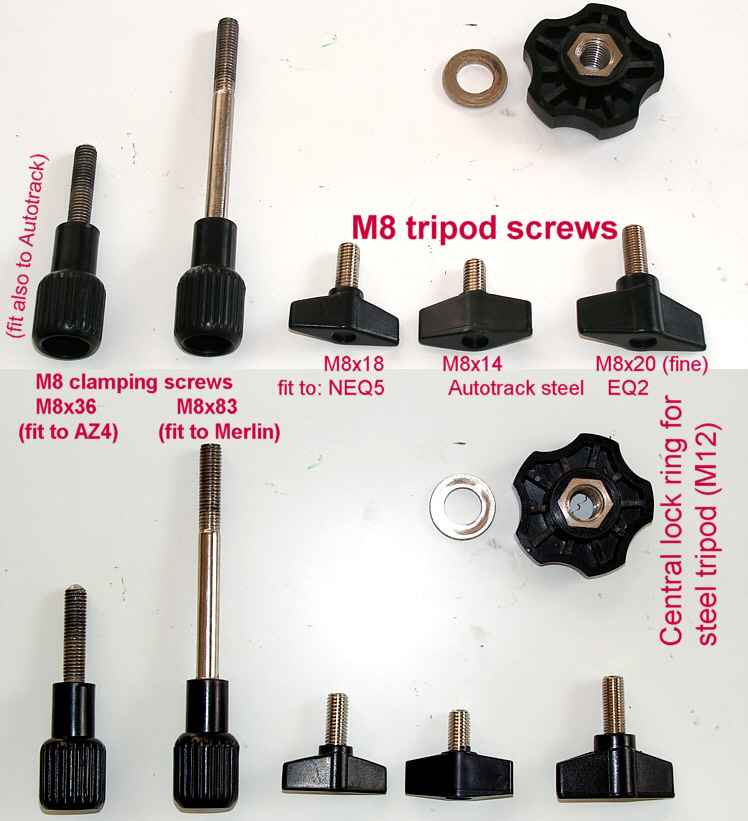 M10 Befestigungsschraube für SkyWatcher Dobson Rockerbox, linke Seite mit Kugellager, Gewindelänge 41mm.
