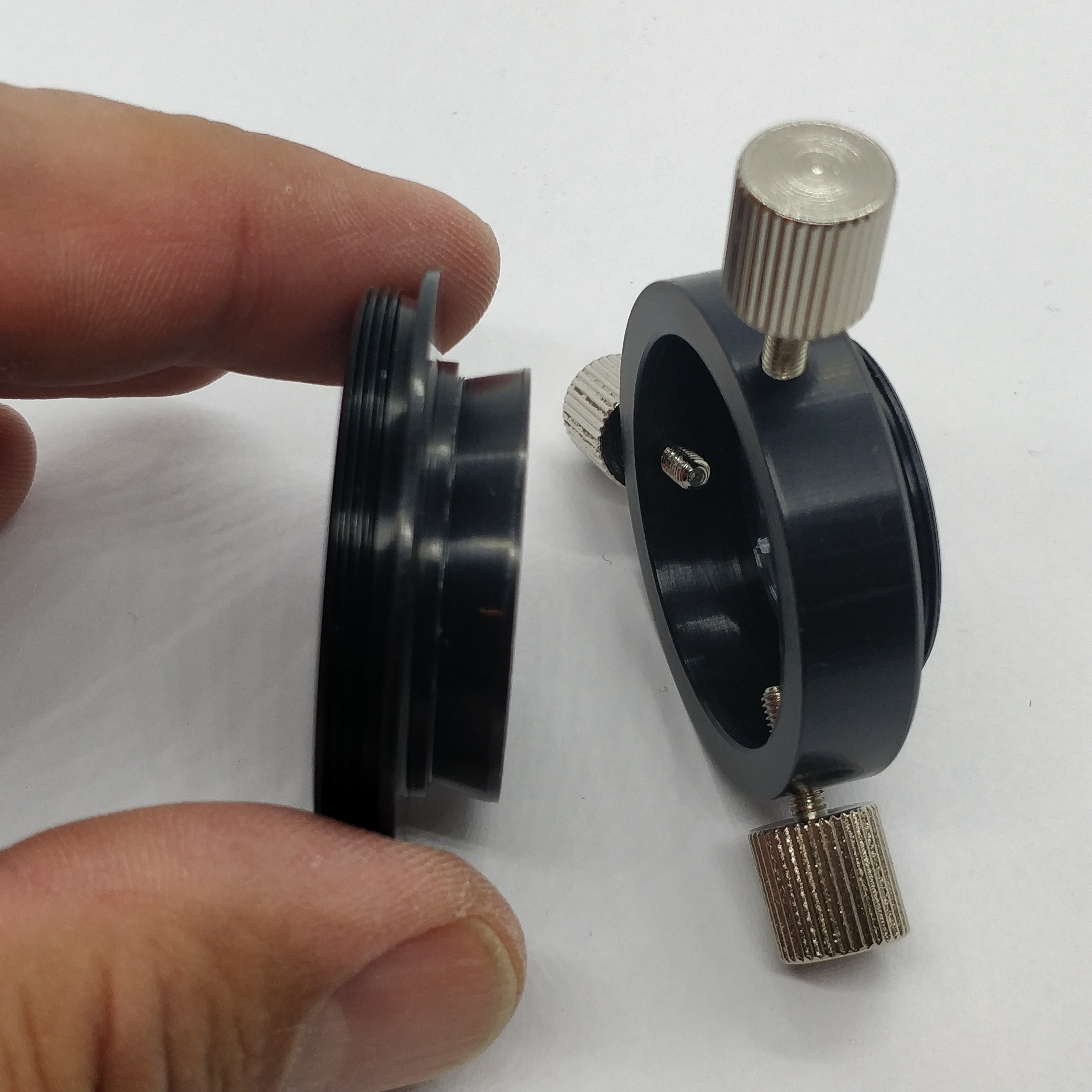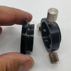 Er übersetzt vom mikroskopspezifischen M24x0.75 Gewinde auf T2-Außengewinde und ermöglicht daher vielfältige Fotoadaptionen für DSLR und MILZ Fotoapparate.