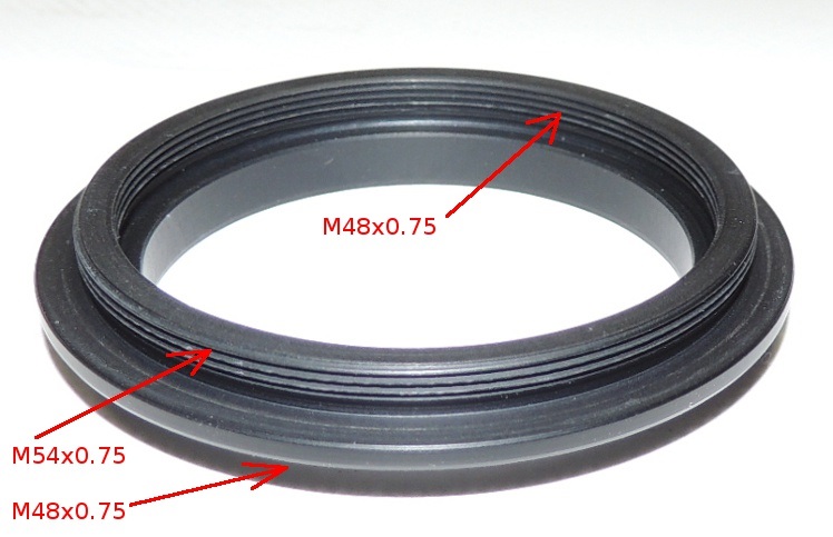 M52nM48p | Takahashi CCD Adapter 2 mit M52x0.75 Innengewinde, kameraseitig M48x0.75 außen | 39.90 EUR | |