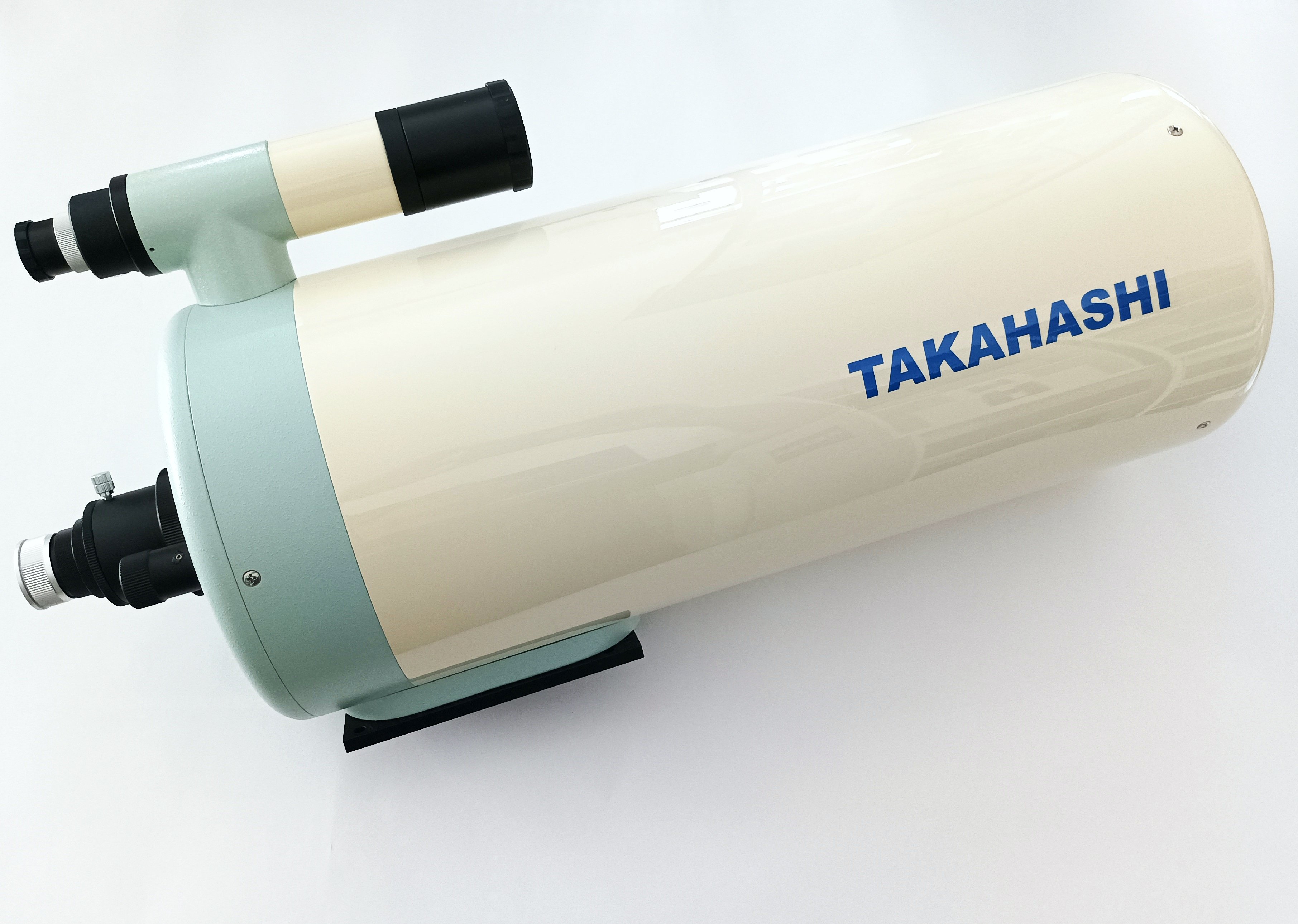 Das System ist vorne offen, es kühlt daher schnell aus und es gibt auch keine Tau-Probleme. Dieses Teleskop ist besonders für Mond und Planeten geeignet, dank des 2 Zoll Anschlusses erreicht man aber auch größere Sehfelder und hat bei DeepSky-Objekten seine Freude. Takahashi bietet auch einen passenden Okularauszug an (TKA00705N), hier wird über den Hauptspiegel grob scharfgestellt, die feine Fokussierung erfolgt dann am Okularauszug (Stichwort Fokusmotor!). Mit dem Adapter TSC00100 kann auch Zubehör mit SC-Gewinde angeschlossen werden. Für die DeepSky-Fotografie gibt es einen passenden 0,8x Reducer (TKA70581), dieser wird normal mit der 2 Zoll Steckhülse angeschlossen, kameraseitig M54-Gewinde. Der hochwertige 7,5x50 Sucher ist mit dem Tubus fest verbunden und kann auch als Tragegriff verwendet werden, er kann mit der regelbaren Takahashi Beleuchtung nachgerüstet werden.