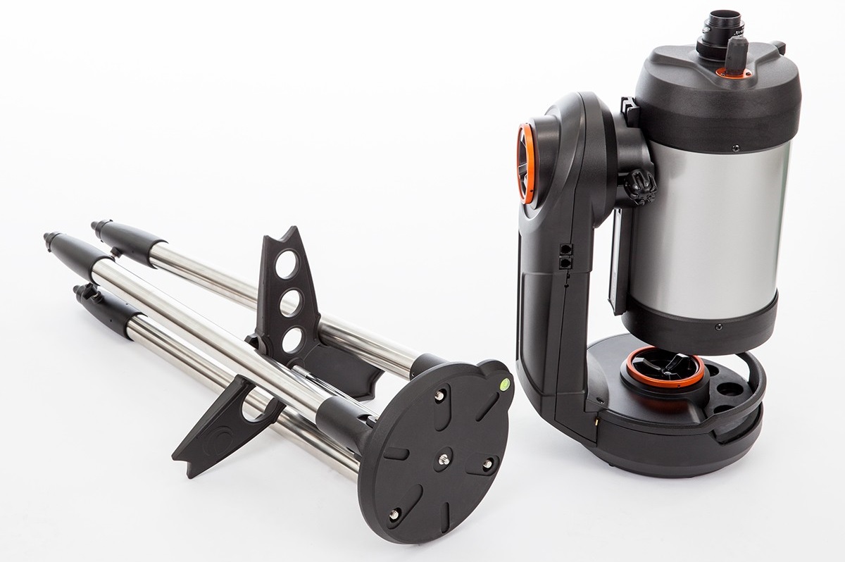 Das NexStar Evolution kann dank der großen, ergonomischen Griffe leicht aufgebaut werden. Das Stahlstativ hat Markierungen, sodass Sie leicht alle Beine auf die selbe Länge ausfahren können. Die Klemmungen in Azimut und Höhe ermöglichen es Ihnen, das Teleskop auch ohne Strom auf ein Ziel auszurichten. Bis zu sieben Okulare können in zwei Ablagefächern verstaut werden – eines hat sogar eine dimmbare rote LED-Beleuchtung.