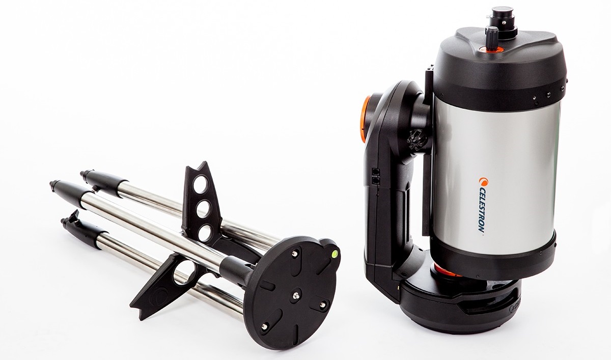 Das NexStar Evolution kann dank der großen, ergonomischen Griffe leicht aufgebaut werden. Das Stahlstativ hat Markierungen, sodass Sie leicht alle Beine auf die selbe Länge ausfahren können. Die Klemmungen in Azimut und Höhe ermöglichen es Ihnen, das Teleskop auch ohne Strom auf ein Ziel auszurichten. Bis zu sieben Okulare können in zwei Ablagefächern verstaut werden – eines hat sogar eine dimmbare rote LED-Beleuchtung.