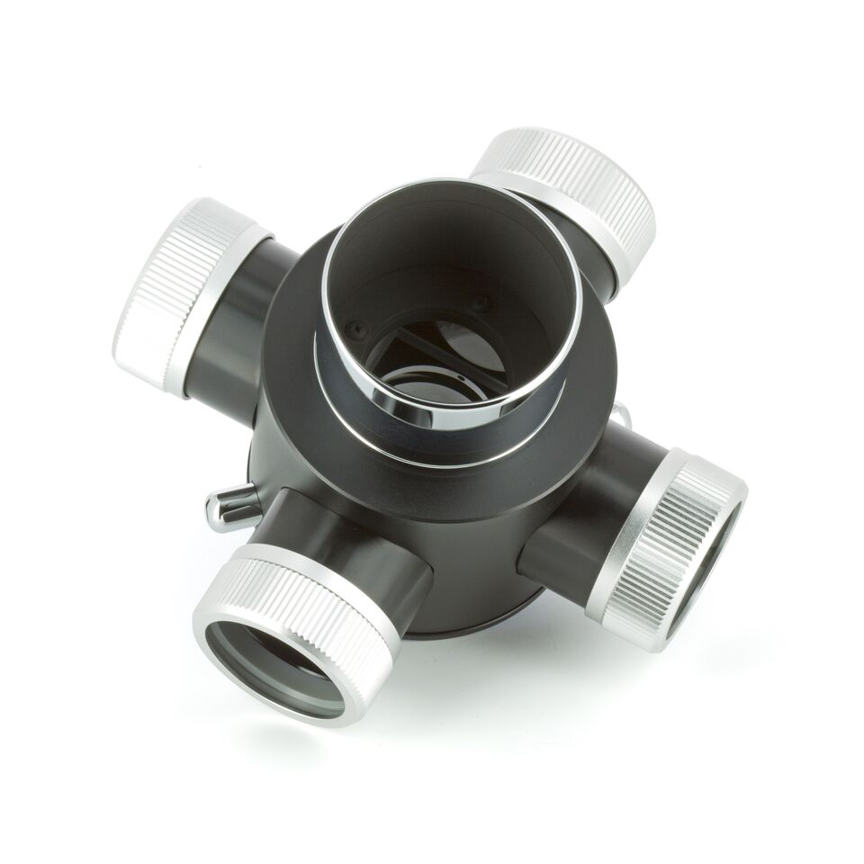 Anschluss teleskopseitig 2 Zoll Steckhülse mit Filtergewinde, Anschluss okularseitig 4x 1,25 Zoll, Lichtweg 81mm