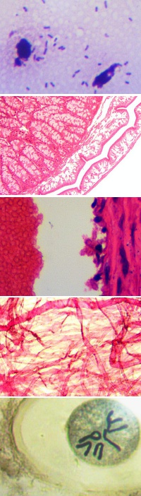 prep20tumor = Karzinome und Tumore (Geschwulste): Leber-Karzinom, primäres und sekundäres, Lungen-Karzinom, Magen-Karzinom, Schilddrüsen-Karzinom, Colon-Karzinom (Dickdarm), Rektum-Karzinom (muzinöses), Rektum-Adenokarzinom, Haut-Krebs (squamös / Schuppenhaut), Melanosarkom (Melanom), Brust-Krebs, Cervix-Karzinom (Gebärmutterhalskrebs), Hoden-Karzinom, Preaputium (Vorhaut) Krebs, Leukämie (Blutausstrich), Milz bei chronischer myeloischen Leukämie, Ovar (papilläres Zystadenom - gutartig), Uterus-Myom (Gebärmutter - gutartig), Uterus-Fibroadenom (Gebärmutter - gutartig), Brust-Fibroadenom (gutartig). (Bild: ganz unten)