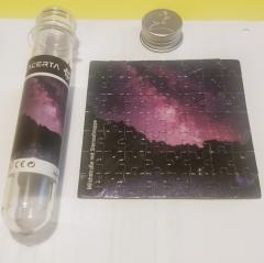 • 1 Reagenzglas aus Acryl (Kunststoff), dient als Behälter der Puzzle-Stücke (Länge 15cm, Durchmesser 3cm)