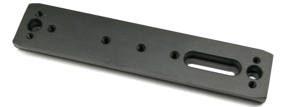 An den Enden sind Löcher für M6 oder 1/4 Zoll Schrauben zum Befestigen von Rohrschellen, der Abstand beträgt 184mm. Es finden sich weitere Gewinde und Löcher für individuelle Montagen, auch ein Langloch ist vorhanden.