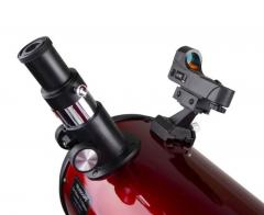 Mit 150mm Öffnung und 750mm Brennweite ist er ein lichtstarkes aber noch transportables Gerät und ein echter Allrounder. Er bietet eine gute Leistung bei Mond und Planeten, sammelt schon genug Licht für erfolgreiche Deep-Sky Beobachtungen und kann auch gut für die Astrofotografie verwendet werden. Durch die kompakte Bauweise kann das Gerät noch auf vergleichsweise günstigen Montierungen betrieben werden. Der Okularauszug nimmt Standard 1,25" Zubehör auf, sodass sich diese Geräte umfangreich aufrüsten lassen. Ein T2-Gewinde ermöglicht das Fotografieren durch das Teleskop.