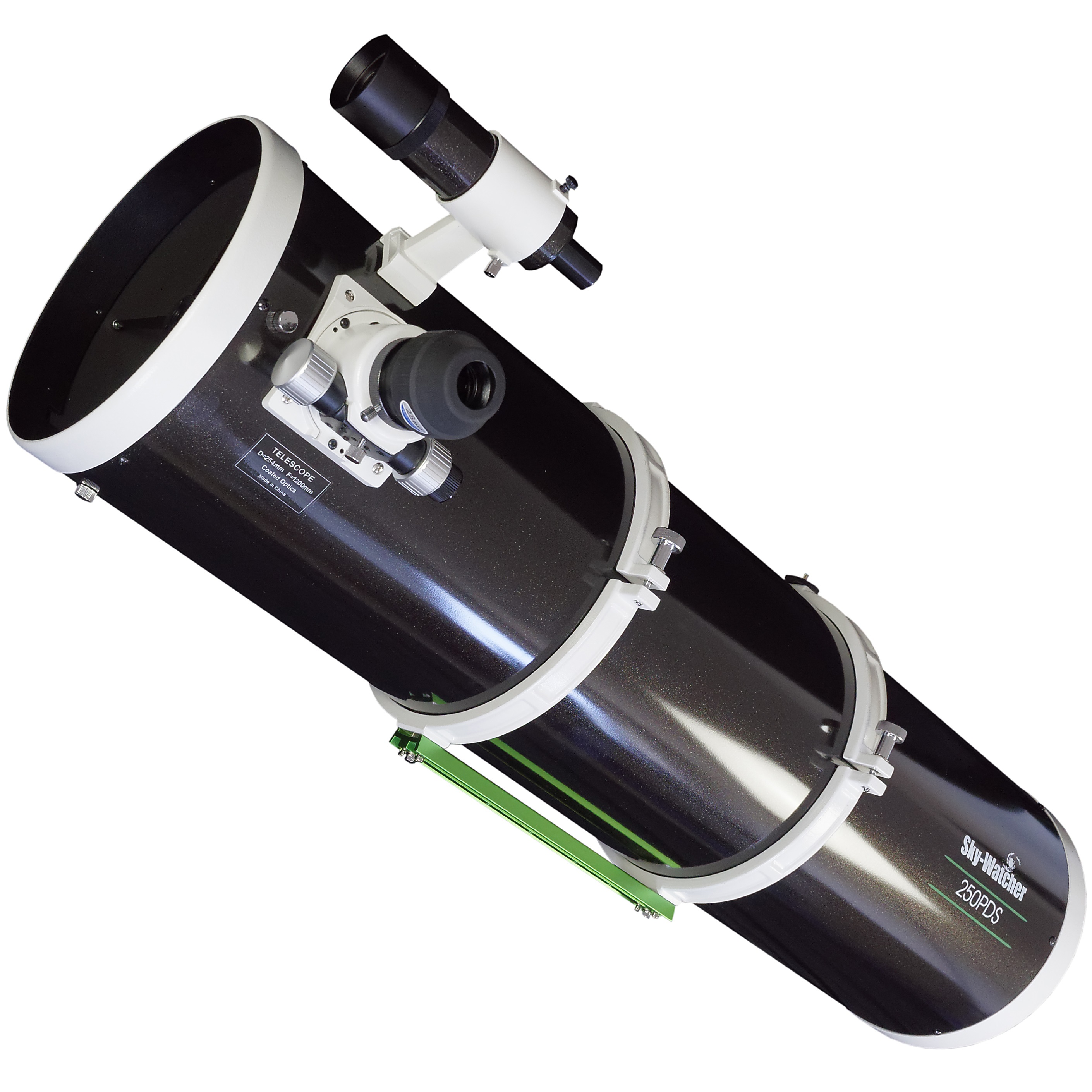 Optischer Tubus (254/1200), Rohrschellen, Vixen-Prismenschiene, achromatisches Sucherfernrohr (9x50) mit SpringLoad Halterung, 2" Apex Okular 28mm