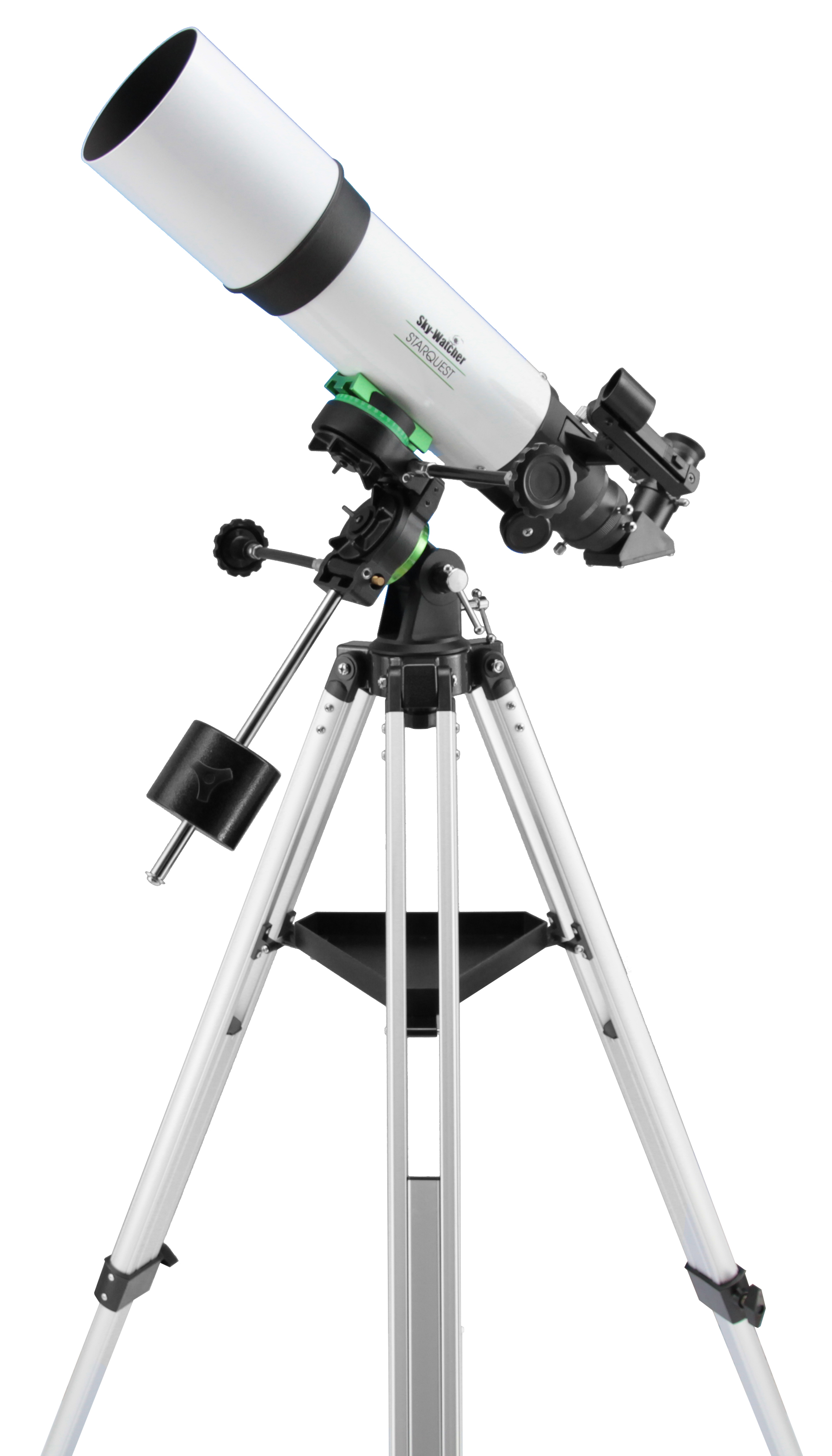 Er ist ein sehr lichtstarker Refraktor mit 102mm Öffnung und nur 500mm Brennweite. In Verbindung mit 2-Zoll-Okularen sind riesige Gesichtsfelder von bis zu 4 Grad möglich, das entspricht etwa dem 8-fachen Vollmonddurchmesser! Bei astronomischer Verwendung sind diese Refraktoren sehr gut für die Beobachtung großflächiger Nebel und Sternenfelder geeignet. Dank des 2-Zoll-Okularauszugs (inkl. Reduzierung auf 1,25") wird dieses Gerät auch gerne als lichtstarkes Teleobjektiv verwendet. Dank der neuen parallaktischen StarQuest-Montierung, ist auch die Beobachtung im Zenit möglich, das ist bei azimutalen Montierungen oft schwierig oder gar unmöglich. Sie ermöglicht es auch, die Erdrotation mit nur einem Drehknopf auszugleichen, dies kann jedoch auch ein optionaler Motor erledigen, was die Beobachtung noch weiter erleichtert.