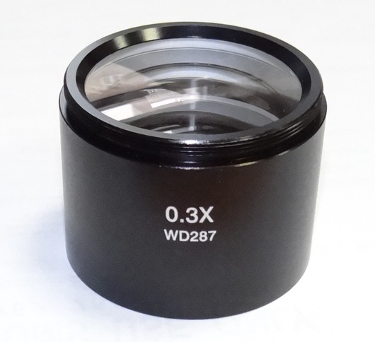 Vorsatzlinse mit 0,3x Vergrößerung für STM45 und IND-C2/3 Mikroskope (Arbeitsabstand 287mm)