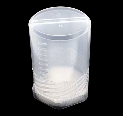 aus Kunststoff und durch Drehen des Deckels leicht zu öffnen und zu verschließen.