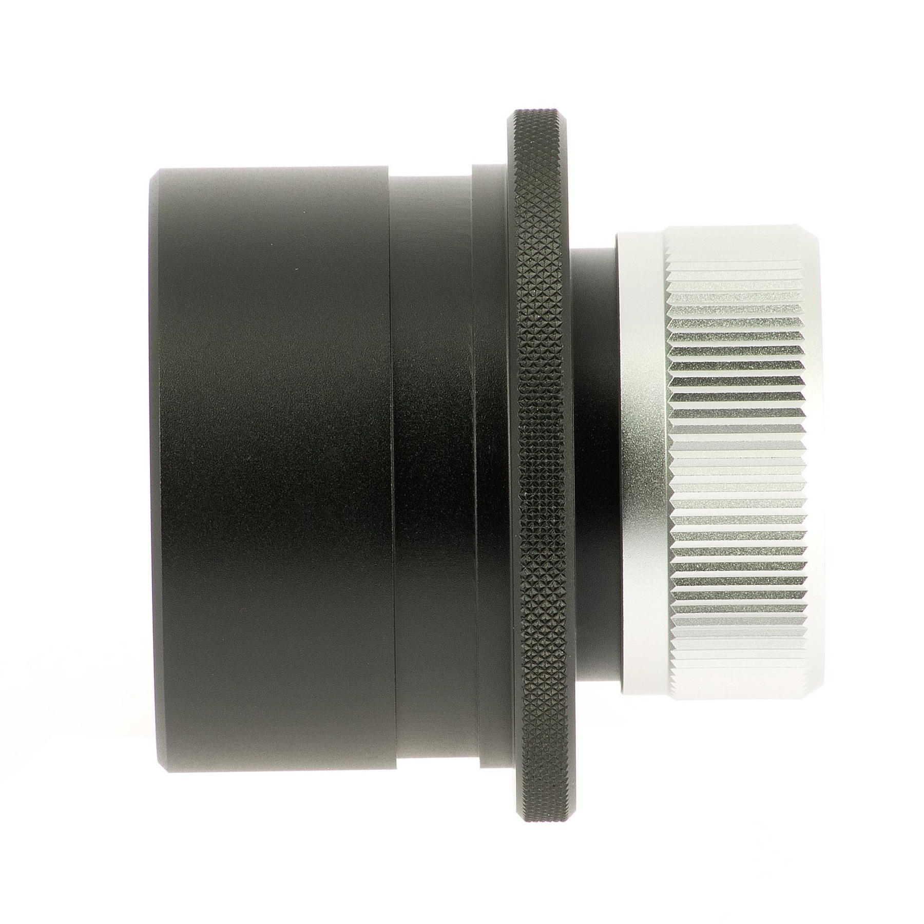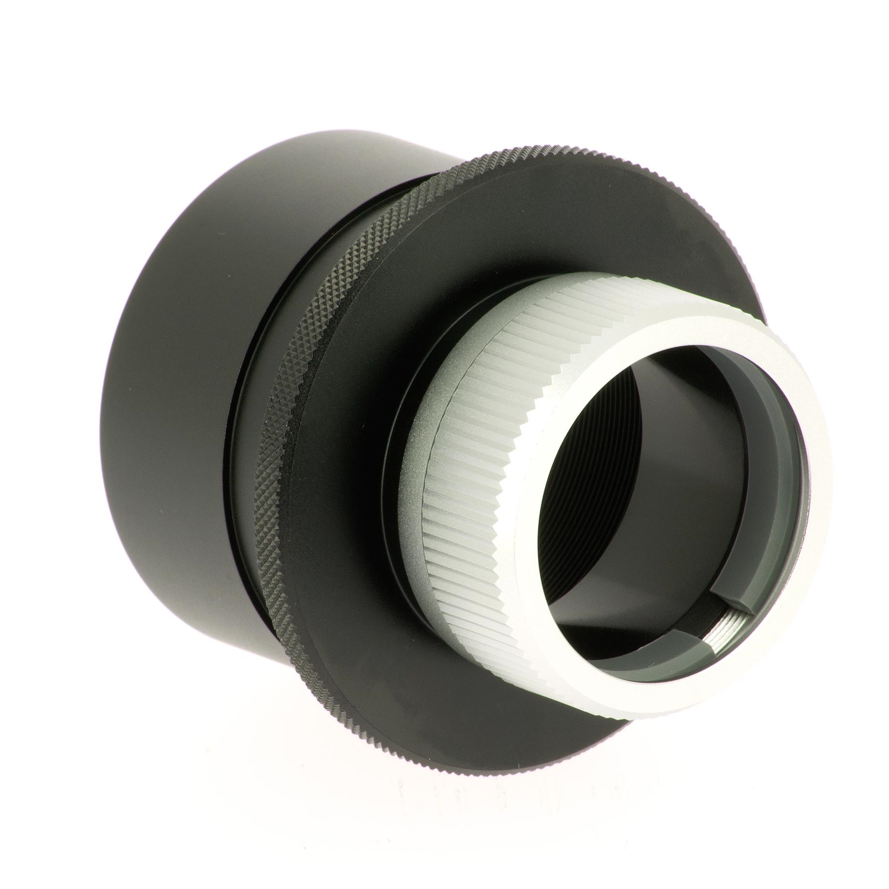 Diese spezielle Reduzierung erlaubt die Verwendung von 2" Filtern bei 1,25" Okulare, bei sauberer und schonender Klemmung der Okulare. Die 2 Zoll Steckhülse besitzt eine Sicherungsnut nach Takahashi-Norm und innen ein 2" Filtergewinde (M48x0,75). Wie auch bei anderen Takahashi Adaptern üblich, ist innen zur Streulichtunterdrückung alles sauber mit schwarzem Mattlack geschwärzt.