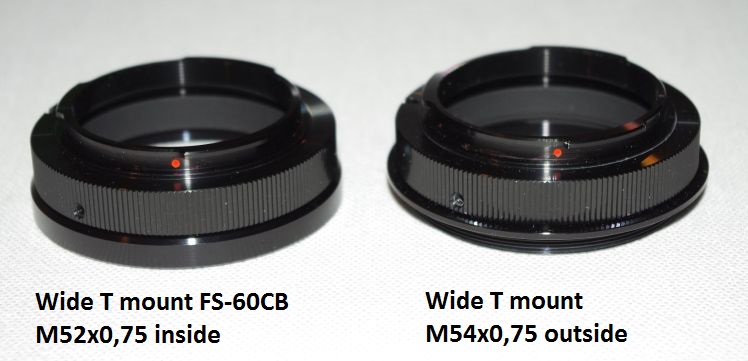 ACHTUNG: Es gibt auch andere Wide-T Bajonettadapter von Takahashi, diese haben teleskopseitig z.B. ein M52x0,75 Innengewinde (für FS60 und FC76). Wenn Sie nicht sicher sind, welchen Sie brauchen, fragen Sie uns!