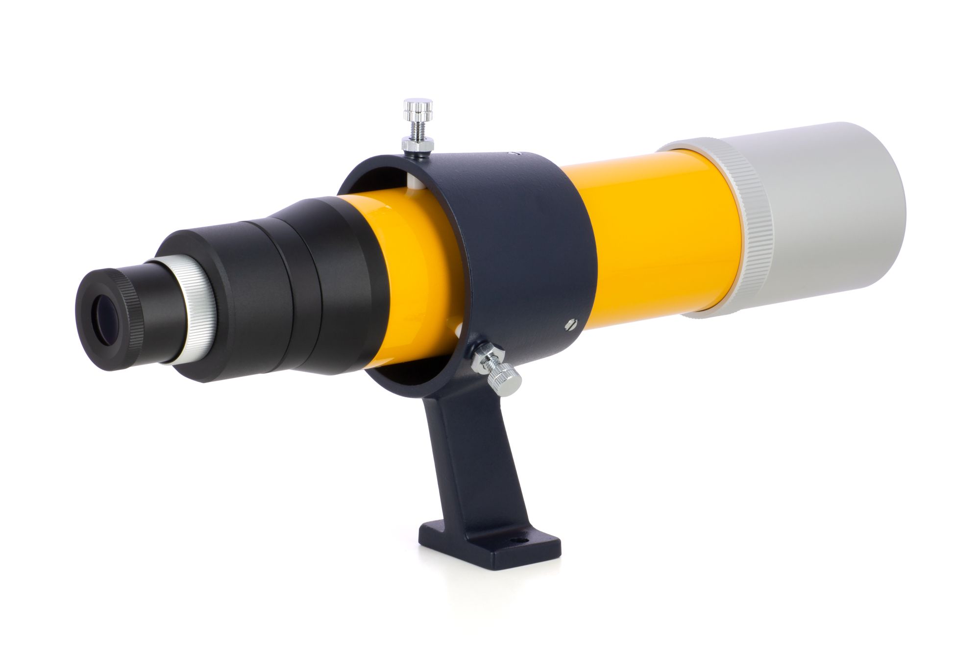 Takahashi 7,5x50 Sucher in gelber Farbe, passend zu den Epsilon-Geräten. Sehr hochwertige Ausführung, Made in Japan. Multivergütete Optik mit sehr feinem Fadenkreuz, in der Mitte unterbrochen (gravierte Strichplatte).